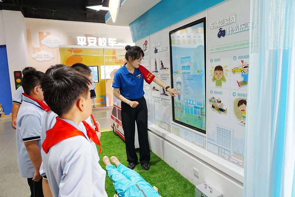 直播鏡頭下,油麻地小學(xué)教室內(nèi)外變成交通安全大舞臺(tái)。 教室內(nèi),民警通過通俗易懂的語言和啟發(fā)式教學(xué)引導(dǎo)同學(xué)們?cè)谌粘I钪凶袷亟煌ǚㄒ?guī)。教室外,孩子們通過踢毽子、滾鐵環(huán)等趣味游戲輕松掌握交通法規(guī)知識(shí)。在交通安全實(shí)景體驗(yàn)館內(nèi),主持人帶領(lǐng)學(xué)生們體驗(yàn)不同場(chǎng)景下復(fù)雜多變的交通狀況,孩子們坐上基地“頂流”“育才號(hào)”校車,通過校車模擬駕駛艙、VR眼鏡沉浸式感受實(shí)景駕駛。