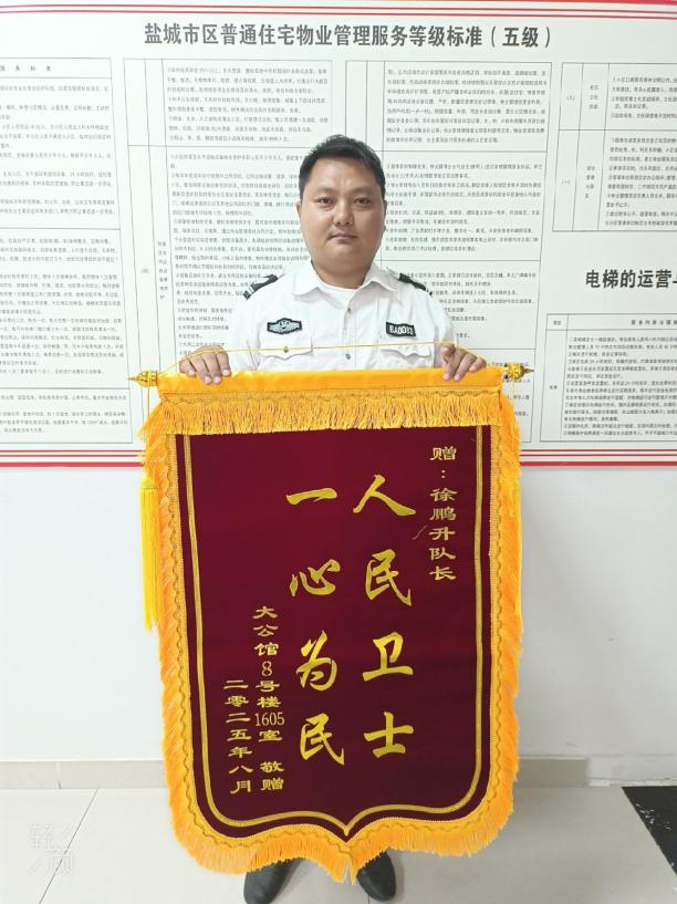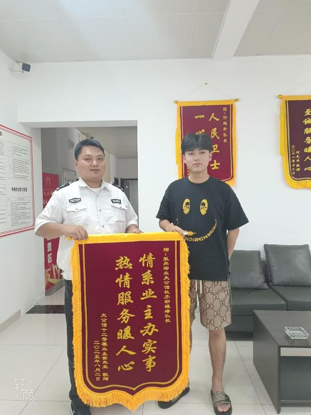 8月,大公館小區(qū)物業(yè)服務(wù)中心內(nèi)暖意融融。業(yè)主黃先生送來(lái)一面寫著情系業(yè)主辦實(shí)事,熱情服務(wù)暖人心的錦旗,感謝秩序部隊(duì)長(zhǎng)姚峰幫忙找回丟失財(cái)物。業(yè)主金女士也將一面寫著人民衛(wèi)士,一心為民的錦旗鄭重地送到保安隊(duì)長(zhǎng)徐鵬升手中,衷心感謝他通過(guò)監(jiān)控追蹤,成功抓獲小偷,為自己追回了被盜財(cái)物。安保團(tuán)隊(duì)以實(shí)際行動(dòng)詮釋著服務(wù)業(yè)主的宗旨,讓業(yè)主們感受到了家一般的溫暖。